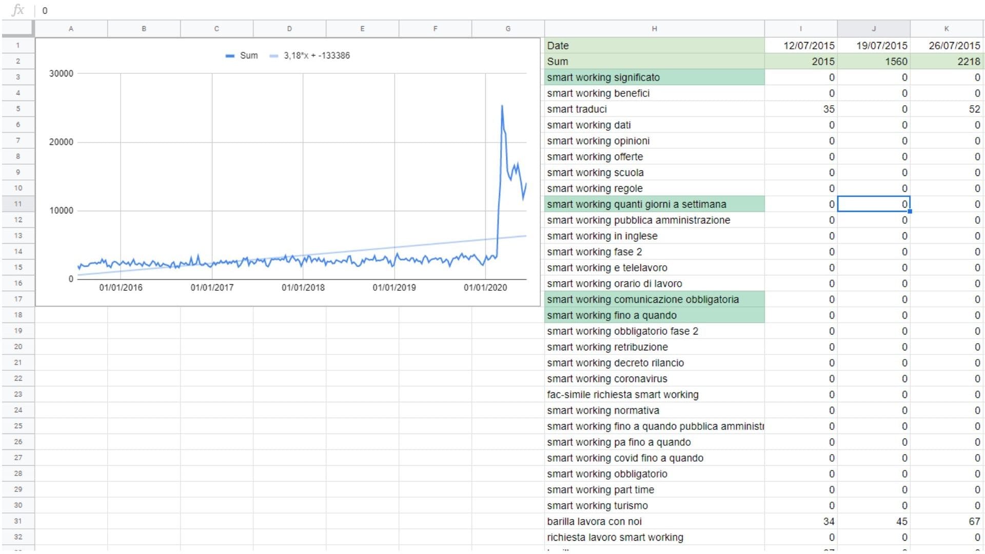Volevamo capire come muoverci per sviluppare un nostro progetto legato allo smart working e anche valutare in anticipo quali e quanti sforzi avremmo dovuto sostenere con azioni di marketing (pensate ai contenuti da fare, alla SEO, alle campagne ADV).