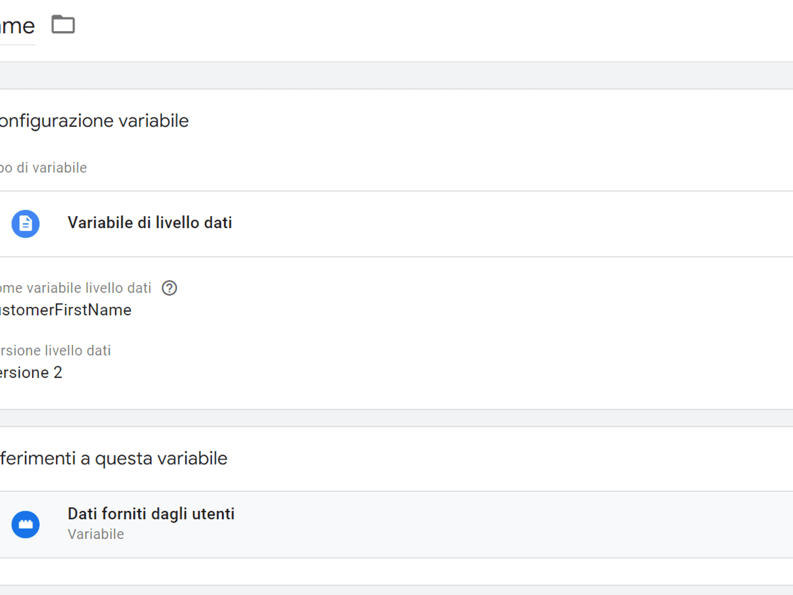 Se un campo del form risulta facoltativo, evita di inserirlo tra i dati forniti dall’utente in modo che il tracciamento risulti integro di tutti i dati. Possiamo quindi creare più variabili di tipo Dati forniti dagli utenti e utilizzarle in base alle varie conversioni tracciate sul nostro sito.