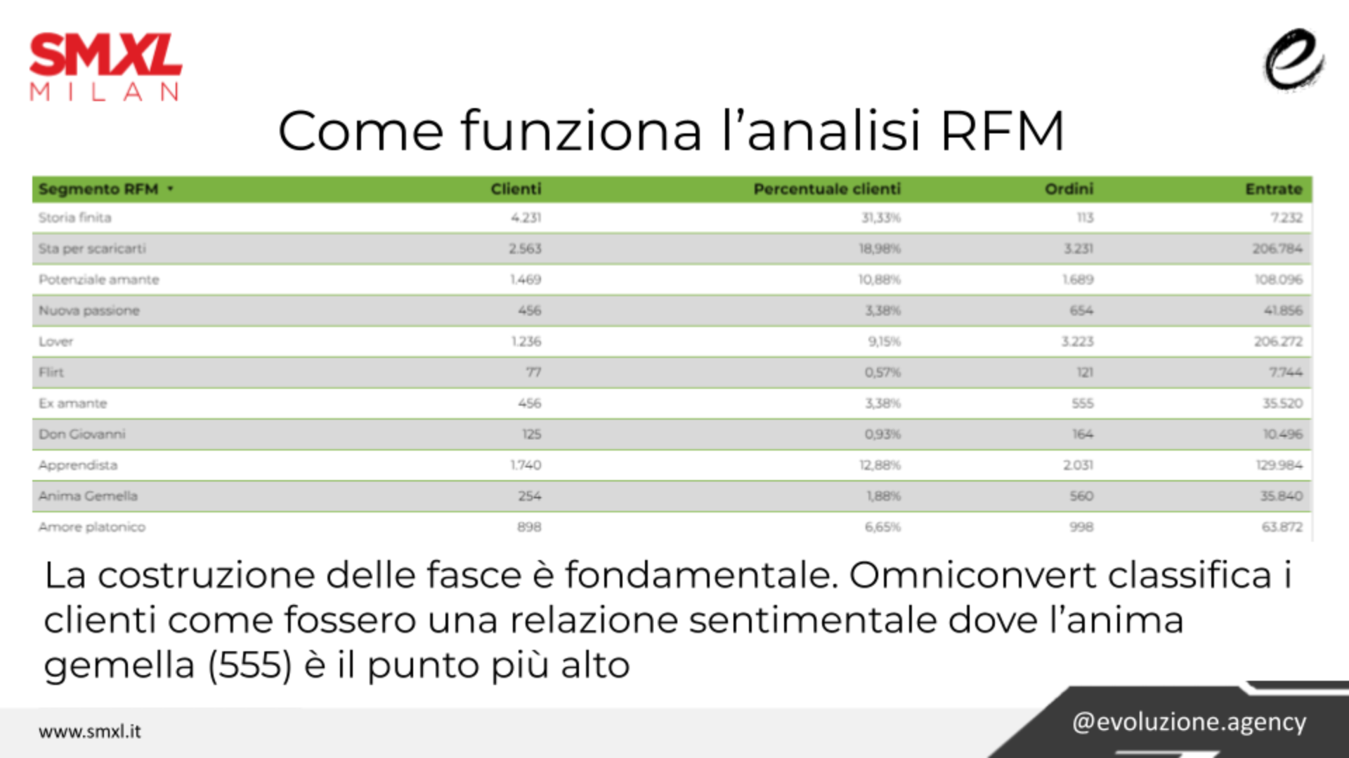 Il punto 4 è fondamentale, perché i segmenti costruiti attraverso il modello RFM scelto definiscono il target per possibili campagna PPC, email e marketing automation.