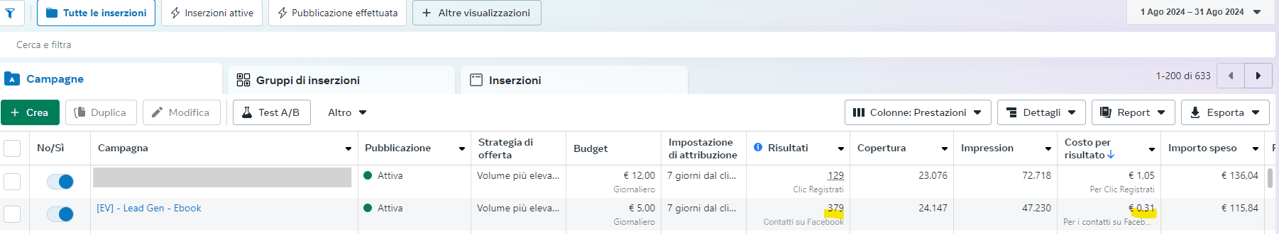 Non sei convinto? Ecco un esempio preso dall’account di un nostro cliente che opera nella distribuzione di frutta e verdura biologica. In questo caso l’obiettivo era aumentare il database dei prospect con utenti appassionati al mondo bio e vegan.
