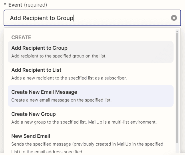 6. Aggiungere un’azione e selezionare lo strumento di marketing automation che vogliamo integrare (Mailchimp, Mailup, Active Campaign, Klaviyo, Brevo, Sendgrid e molti altri sono disponibili)