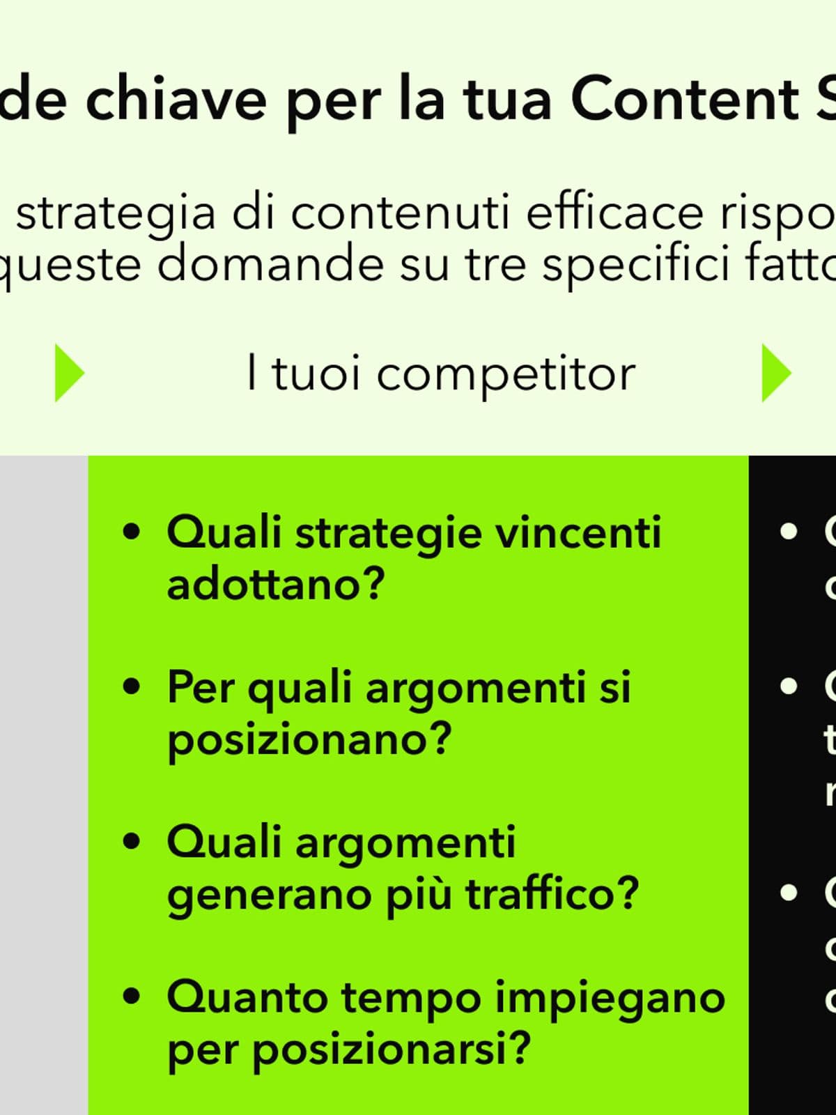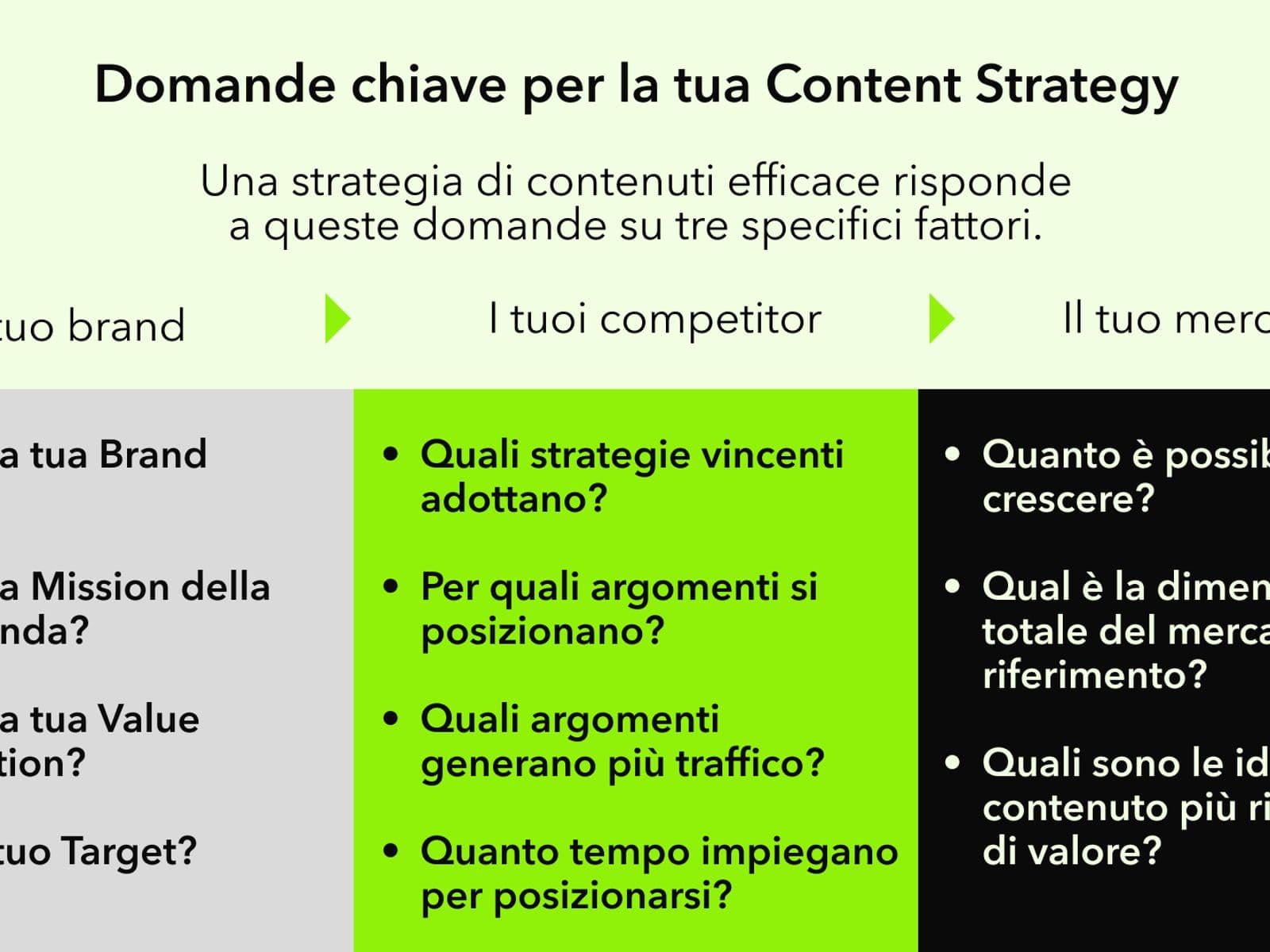 Per individuare gli argomenti di maggior valore e con potenziale di posizionamento, valuta attentamente fattori quali: