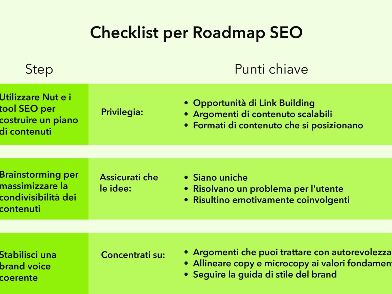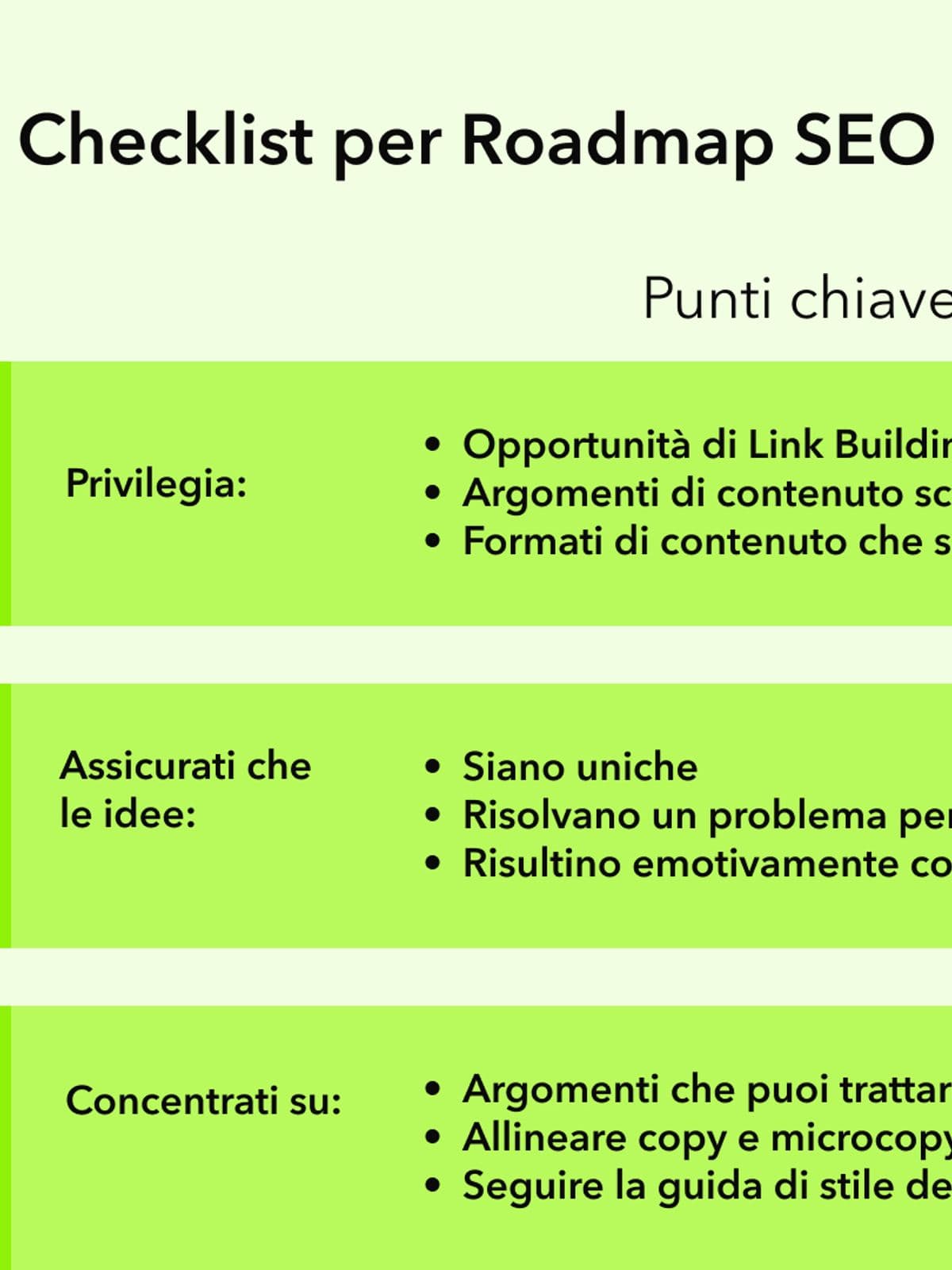 Con questa roadmap a disposizione, potrai identificare le opportunità più profittevoli per il tuo brand, traducendo i dati in azioni concrete e rafforzando la tua strategia. Un approccio così strutturato rappresenta la chiave per comprendere come impostare una strategia SEO e come creare una strategia SEO efficace, dove ogni decisione si traduce in risultati misurabili per il tuo eCommerce o per la tua attività.